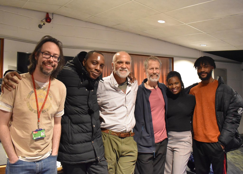 Voice artists and crew: (from left) Phill Phelps/audio engineer & coder; Jade Fearon/voice actor; Ralph Hoyte/concept, script, director, producer; Alan Coveney; Kerry-Ann Waison; Aaron Iyiih/voice actors