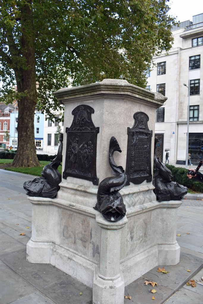 To access this audio experience you can downlead the app to your smartphone, go to the start of the soundscape at the Cenotaph in Bristol city centre (just up from the Colston plinth, below) and follow the on-screen instructions. The soundscape is located from the Cenotaph all the way to Pero’s Bridge (and over the bridge) – that’s the horned bridge over the water you will see in the distance as you wander down towards the Floating Harbour.